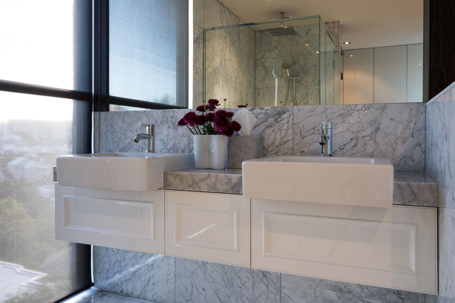 Bathroom Vanities - Customised Bathroom CabinetsBathroom cabinets are constructed using a water resistant material not usually found in the residential market, creating a more advanced and longer lasting product. With solid glue and dowell construction, durable exterior finish options, and clashed edges with 2mm PVC edging, you are assured of a quality storage product. When it comes to designing and installing your customised bathroom cabinets, the options are unlimited.