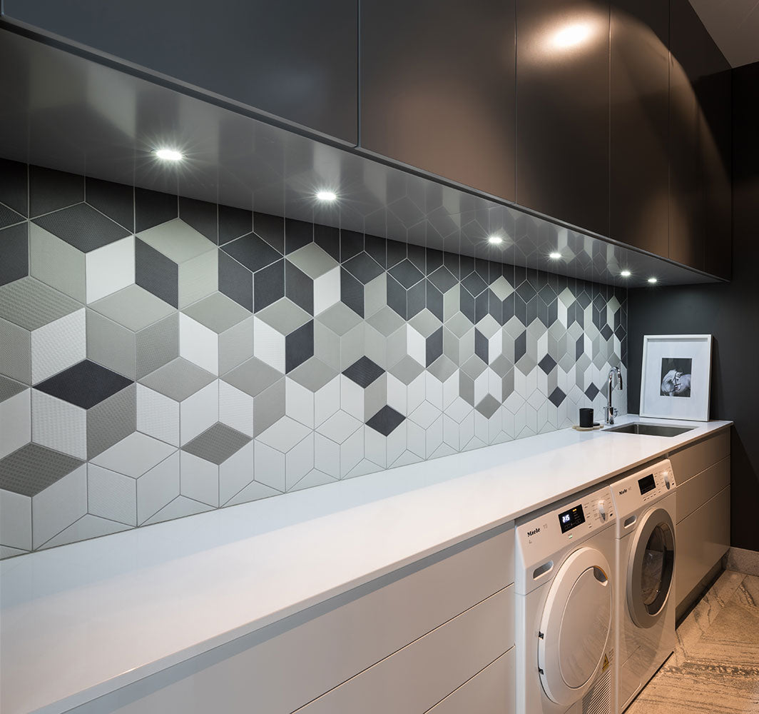 Laundries have become more than a single function area, often incorporating a butler-type area as overflow from your kitchen, with storage systems and shelving for additional appliances. These laundry areas should be well designed, and often the most efficient option is to manufacture your laundry in conjunction with your kitchen.