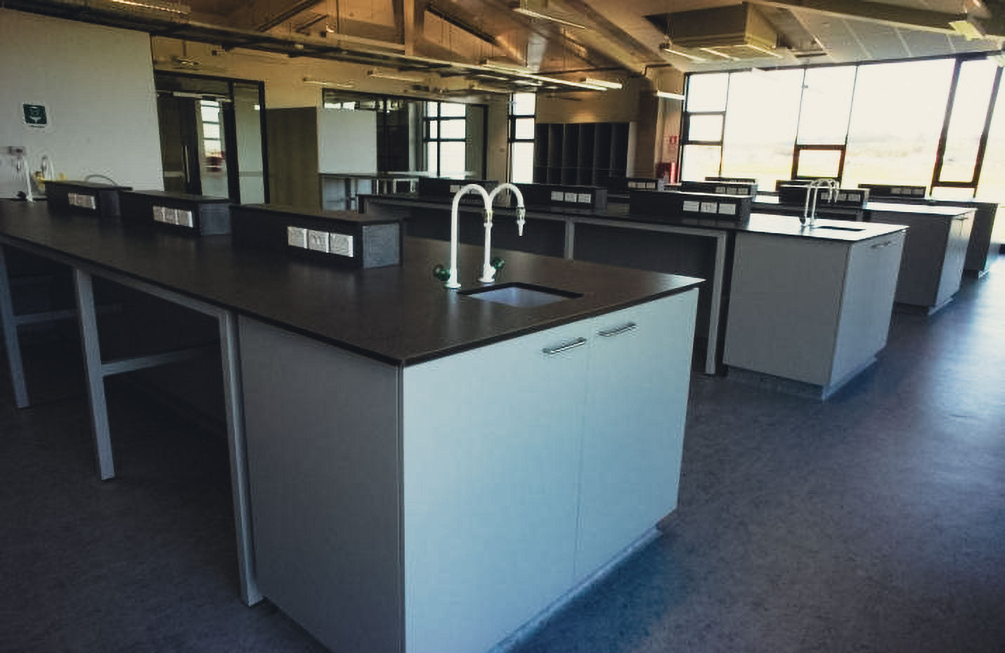 School Fitouts - Staff Facilities and Administrative Facilities - Gymnasium Seating - Science LaboratoriesSharp and Page was recently commissioned by Fletcher Construction to do a school fitout and supply all of the interior fixed cabinetry at Ormiston High School, including the reception counter, kitchens, main cafeteria counters and bar leaners, storage units, science laboratories, bench seating, lockers, pigeon holes, staff facilities and administrative facilities, gymnasium seating and lockers, and library administrative facilities.